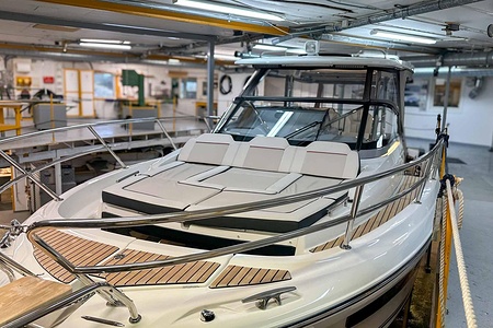 Båden kan beses på vores anlæg på Vindön, Sverige