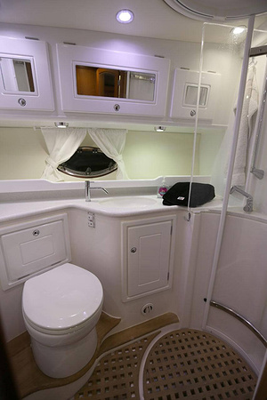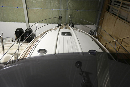 Nord West 420 has been awarded Motor Boat of the Year both in 2007 and 2008, in the category “flybridge boats up to 50 ft”. The boat is equipped with IPS and joysticks. The fabrics inside are light, for example white leather in the saloon.