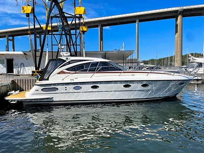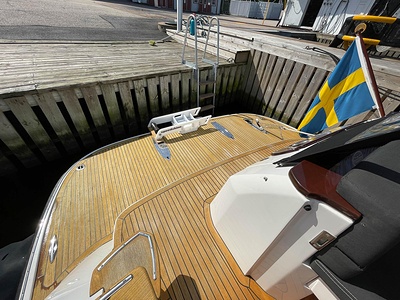 NordWest 430 Sportstop är en daycruiser med fantastiska sjöegenskaper, joystick för trygg tilläggning och bekvämt elektrisk kapelltak. Båten är dessutom utrustad med de största drevmotorerna med 400hk, Humphree automatiskt trimplanssystem, generator och vagga med vinsch för att kunna ta med sig en gummibåt eller vattenskoter. Tre dubbelkabiner och WC med duschkabin.