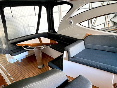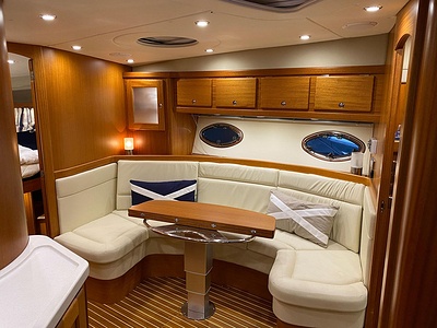 Vi har fått in en Nord West 430 SportsTop, årsmodell 2013, med IPS 600, dubbla joysticks och Dynamic Positioning System. Layout med tre dubbelkabiner plus bäddbar salong och ett badrum.