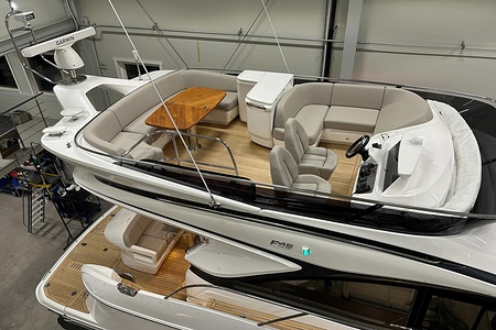 2024 year model • Twin Volvo IPS 650 (2 x 480hp each) diesel engines • Volvo Joystick control • Assisted Docking • Dynamic Positioning System / DPS • Automatic trim system • Variable bowthruster with hold • Hydraulic platform • Walnut interior wood, satin finish • Saloon berth conversion • Heated bathroom floors • Washed/dryer • Dishwasher • Full teak • ONAN generator • BBQ in wetbar • 4x Garmin Glass Cockpit 16 inch chartplotters integrated with Volvo autopilot • Radar • Demist • Heating