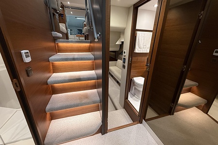 Twin Volvo penta IPS 650 (2 x 480 mhp) are fitted as standard and include dual station joystick controls and ACP (anti corrosion protection) system