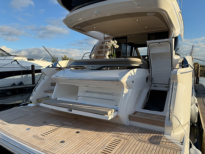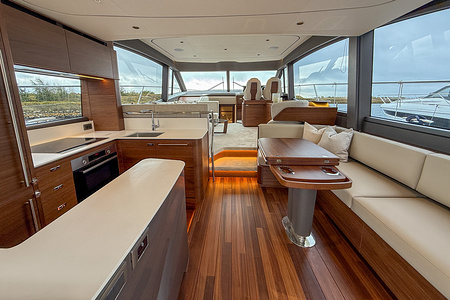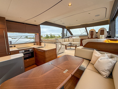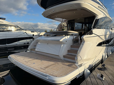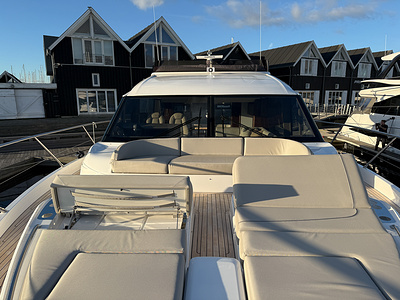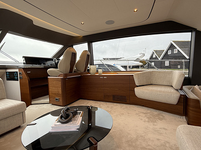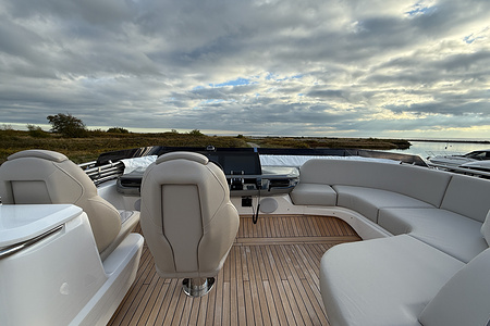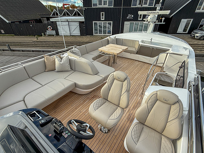 Med sine elegante linjer, rummelige flybridge og sømløse forbindelse mellem inde- og udeområder kombinerer Princess F58 praktisk funktionalitet med raffineret luksus – og sætter en ny standard for flybridge-yachting i sin klasse.