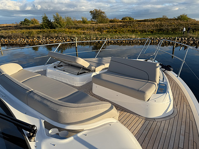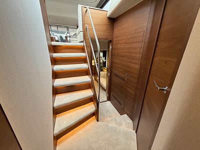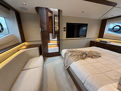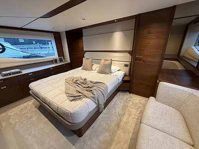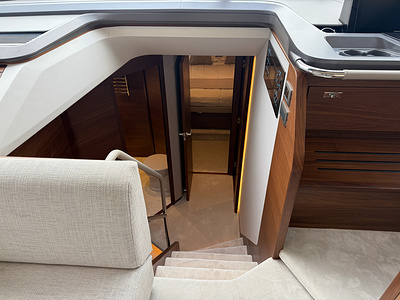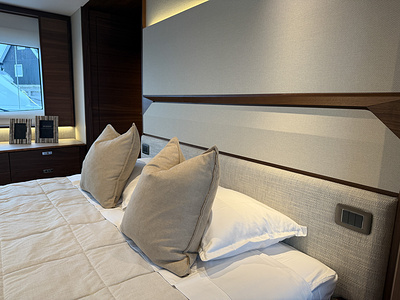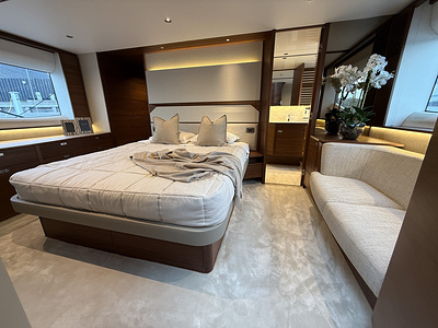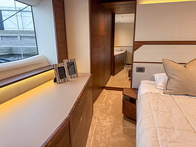 Det eksklusive interiør i satin valnød viser Princess’ velkendte håndværk – varmt, sofistikeret og skabt til livet på havet. Med 4 smukt indrettede kahytter og 3 rummelige badeværelser, inklusive en luksuriøs fuldbredde masterkabine, tilbyder F58 fremragende indkvartering til familie og gæster.