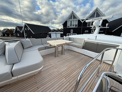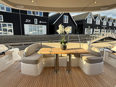 Med to MAN V8-1200 hk motorer leverer denne yacht imponerende kraft og en jævn, tryg cruising.