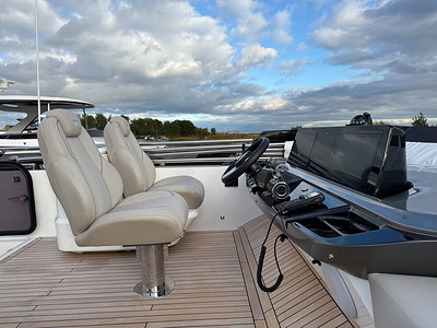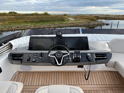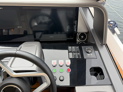 – Upgraded steering wheel to flybridge helm position