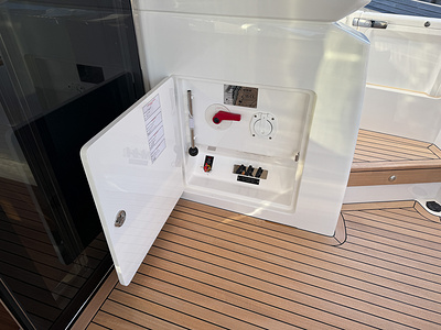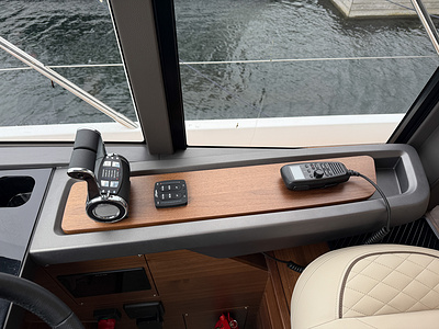 – Flybridge console sprayed in Oyster Grey