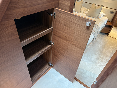Walnut interior wood satin finish (galley floor is V-groove planked walnut as standard)