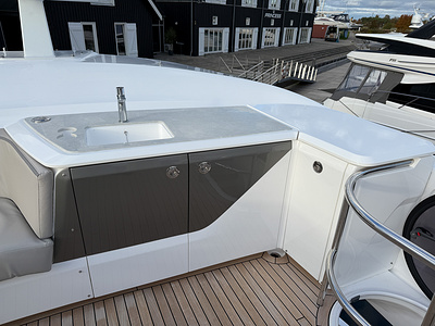– Flybridge wetbar and cockpit servery sprayed in Oyster Grey