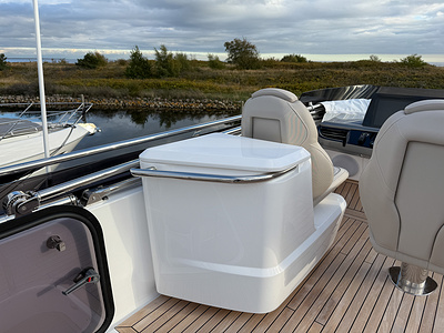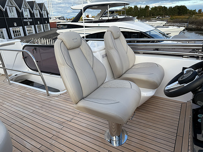 – Quilting detail with contrast accents to flybridge helm seating