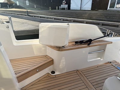 White gelcoat finish as standard (With dark grey water line, black antifouling. Hull & bathing platform fendering is white with stainless steel insert)