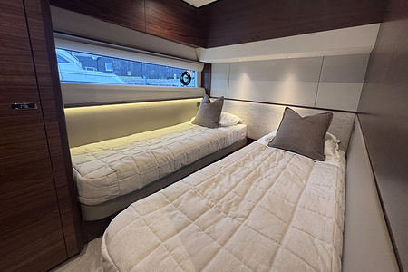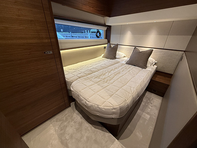 Starboard cabin to have double berth conversion with powered sliding mechanism on inboard berth, in place of two single beds