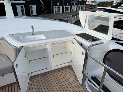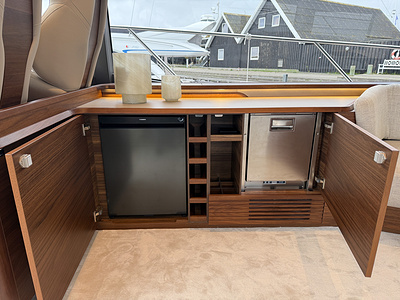 Det eksklusive interiør i satin valnød viser Princess’ velkendte håndværk – varmt, sofistikeret og skabt til livet på havet. Med 4 smukt indrettede kahytter og 3 rummelige badeværelser, inklusive en luksuriøs fuldbredde masterkabine, tilbyder F58 fremragende indkvartering til familie og gæster.
