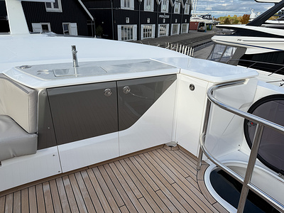 Med sine elegante linjer, rummelige flybridge og sømløse forbindelse mellem inde- og udeområder kombinerer Princess F58 praktisk funktionalitet med raffineret luksus – og sætter en ny standard for flybridge-yachting i sin klasse.