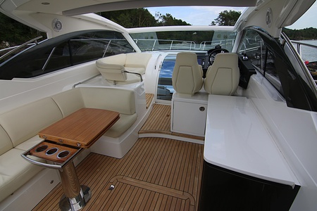 V39 er en kjent og populær båt fra V-class segmentet til Princess. I 2013 vant den prisen Motor Boat of the Year. V39 er kjent for sine sjøegenskaper og volum. Den sosialt utformede cockpiten er utstyrt med et vakkert sammenleggbart teakbord og en velutstyrt grålakkert wetbar med grill, vask og kjøleboks.