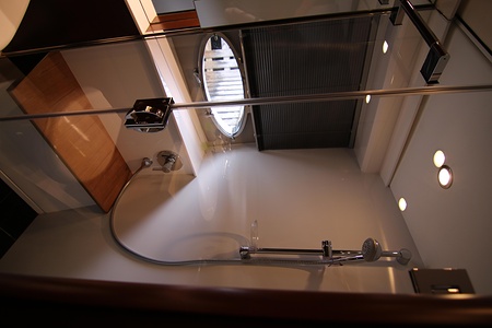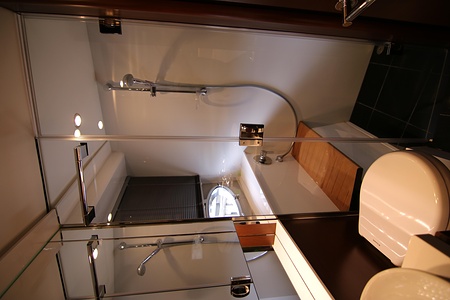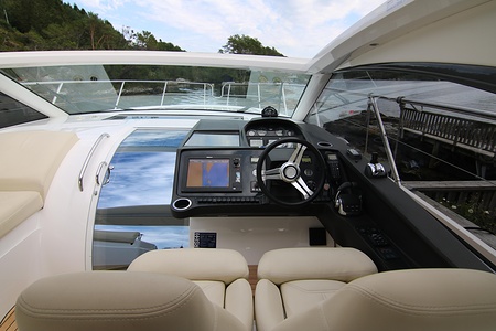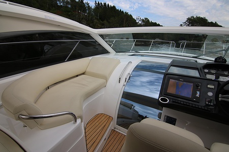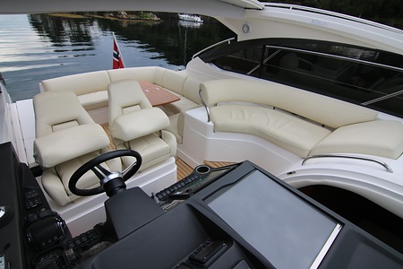 I cockpit har man en stor sittegruppe, sitteplass for gjester i fartsretningen og to stoler ved den oversiktlige førerposisjonen.