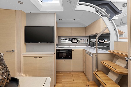 Alba Oak interior wood satin finish (random block light oak galley floor as standard)