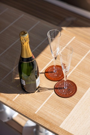 Teak laid side decks and foredeck (Note: cockpit deck and transom platform are teak as standard)