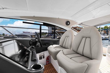 “Standard helm console is Anthracite Grey with helm seats in Comfort