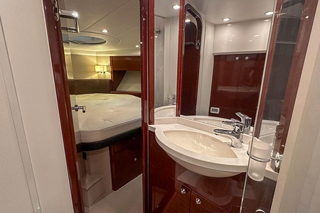 Nu har vi nöjet att presentera en mycket välvårdad Princess V45 – en tidlös sportcruiser som kombinerar elegans, komfort och prestanda på bästa sätt. Denna båt från 2012 erbjuder generösa utrymmen med två rymliga hytter, två toaletter med separata duschkabiner samt en ljus och inbjudande salong med bäddmöjlighet. Ombord möts du av ett stort och funktionellt pentry med barlösning och gott om förvaringsutrymmen.