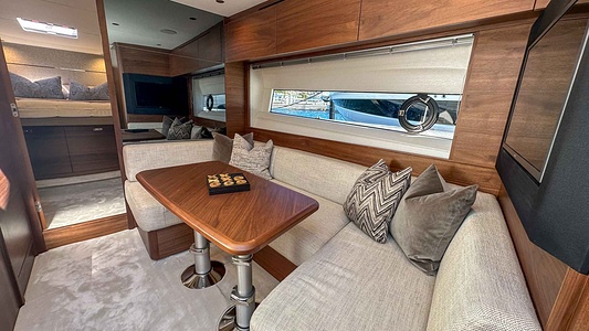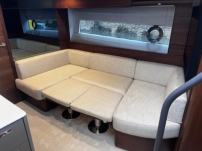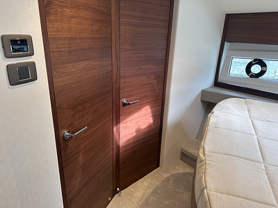 Walnut interior wood satin finish (saloon, galley and helm timber floors are V groove planked walnut as standard)