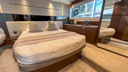The Princess V50 is fitted with an autopilot (with rate gyro) and Volvo/Garmin 16” colour multi-function display at helm station incorporating GPS/chart plotter, echo sounder, log trip as well as engine instrumentation and autopilot controls. Fuel gauges and helm position indicator are also displayed.