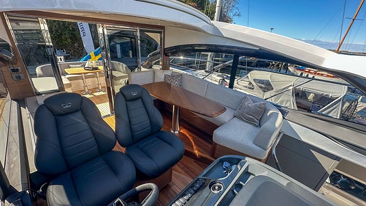 Oplev den helt nye Princess V50 Deck Saloon (2026 model) – en kombination af markant design, banebrydende teknologi og ultimativ komfort til søs.