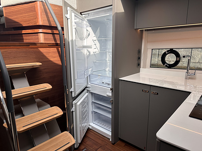 Full height fridge/freezer is fitted as standard. Galley units in lacquered finish