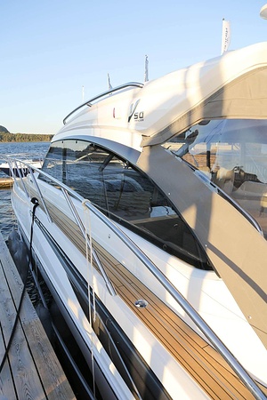 Princess V50 Open (2019) udrustet med dobbelte IPS 600 ~118h med joystick, Volvo Shadow Drive, Humphree automatiske trimplan, Aircondition med varme, generator mm. Layout med to dobbelt kabiner, to WC og salon med mulighed for opredning samt solseng med gummibåds garage agten. Fremvisning i udstillings hallenpå Vindön og klar til levering på Vindön/Sverige.