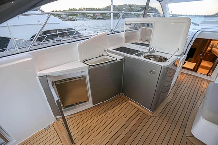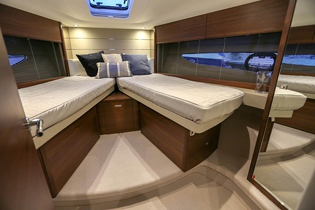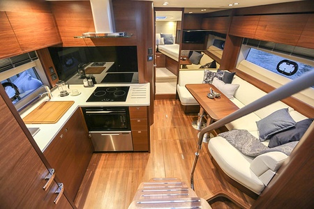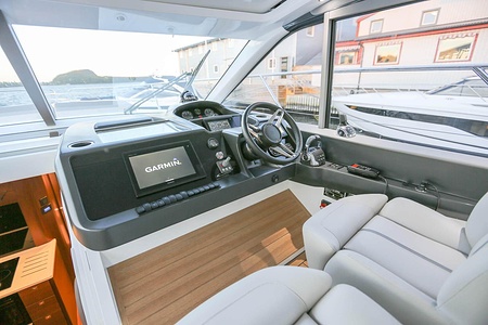 Dubbla Volvo Penta IPS 600 (2 x 435 hk) monteras som standard och inkluderar joystick, 7 tums LED display och ACP-system (antikorrosionsskydd)