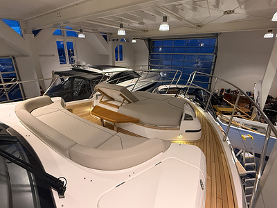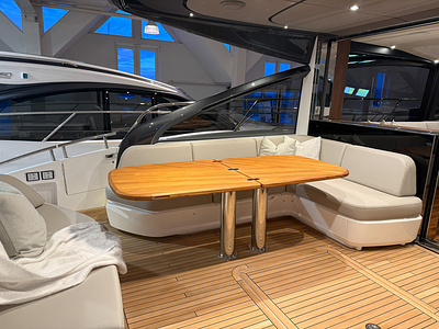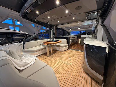 Med sine elegante linjer, rummelige åbne cockpit og en luksuriøs indretning i højeste kvalitet er Princess V55 det ultimative udtryk for sporty yachtstil og praktisk funktion.