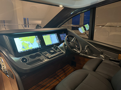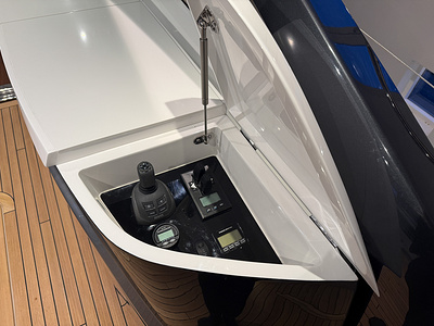 Volvo joystick control with low speed manoeuvring in ‘docking mode’ and steering at any speed in ‘driving mode’. Operates engines, steering and thruster(s) including stern thruster when fitted (includes uprating standard bow thruster to 210KgF variable speed)