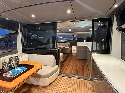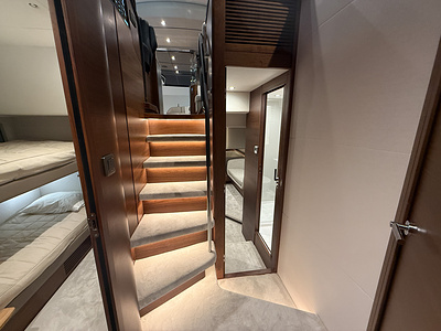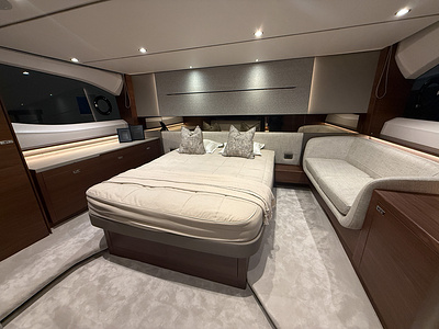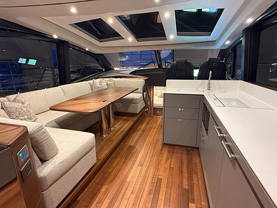 Med to Volvo D13-1000 hk motorer og joystickkontrol leverer denne yacht enestående præstationer og præcis manøvrering ved alle hastigheder.