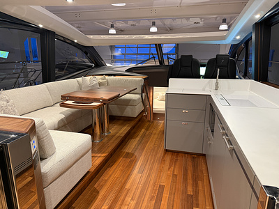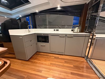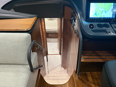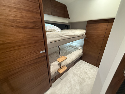 Walnut interior wood satin finish (galley, saloon and helm floors are V groove planked walnut as standard)
