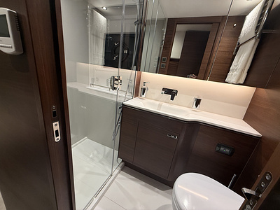 Reversibel klimatanläggning/värmare: (66,000 Btu – tropisk specifikation upp till 40°C, inkl utblås i alla kabiner och badrum) Rekommenderad generator : 17,5 kW