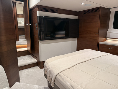 Master stateroom – 43” LED TV with Fusion Apollo MS-RA670 with DAB/Wi-Fi and external USB. Paired with Focal speakers (2)