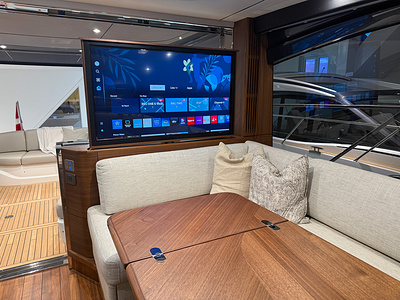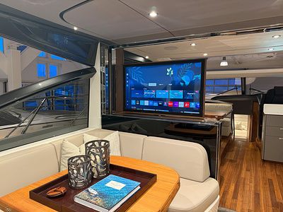 Deck Saloon TV lift with 180° swivel allowing cockpit/saloon viewing