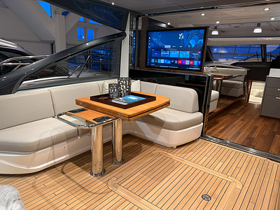 Deck Saloon – 50” LED TV (on a powered lift) with Fusion Apollo MS-RA770 with AM/FM/Bluetooth/DAB/WIFI and external USB. Paired with Focal speakers (2)
