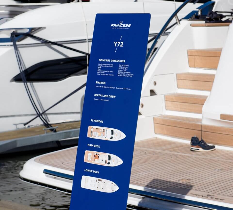 Princess Yachts West Sweden / Norway / Denmark får et fantastisk line-up med otte både, inklusiv skandinavisk premiere på den helt nye Y72. Princess Y72 er også for nylig blevet tildelt prisen som Motor Boat of the Year i kategorien Flybridge over 60ft. Søsterbåden F45, som er blevet kåret som vinderen i kategorien Flybridge-både op til 60 fod, vil også blive udstillet på messen.