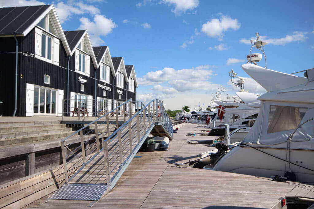 Princess Yachts Danmark har kontor, service och bådplatser i Greve Marina ca 20 km söder om Köpenhamn.