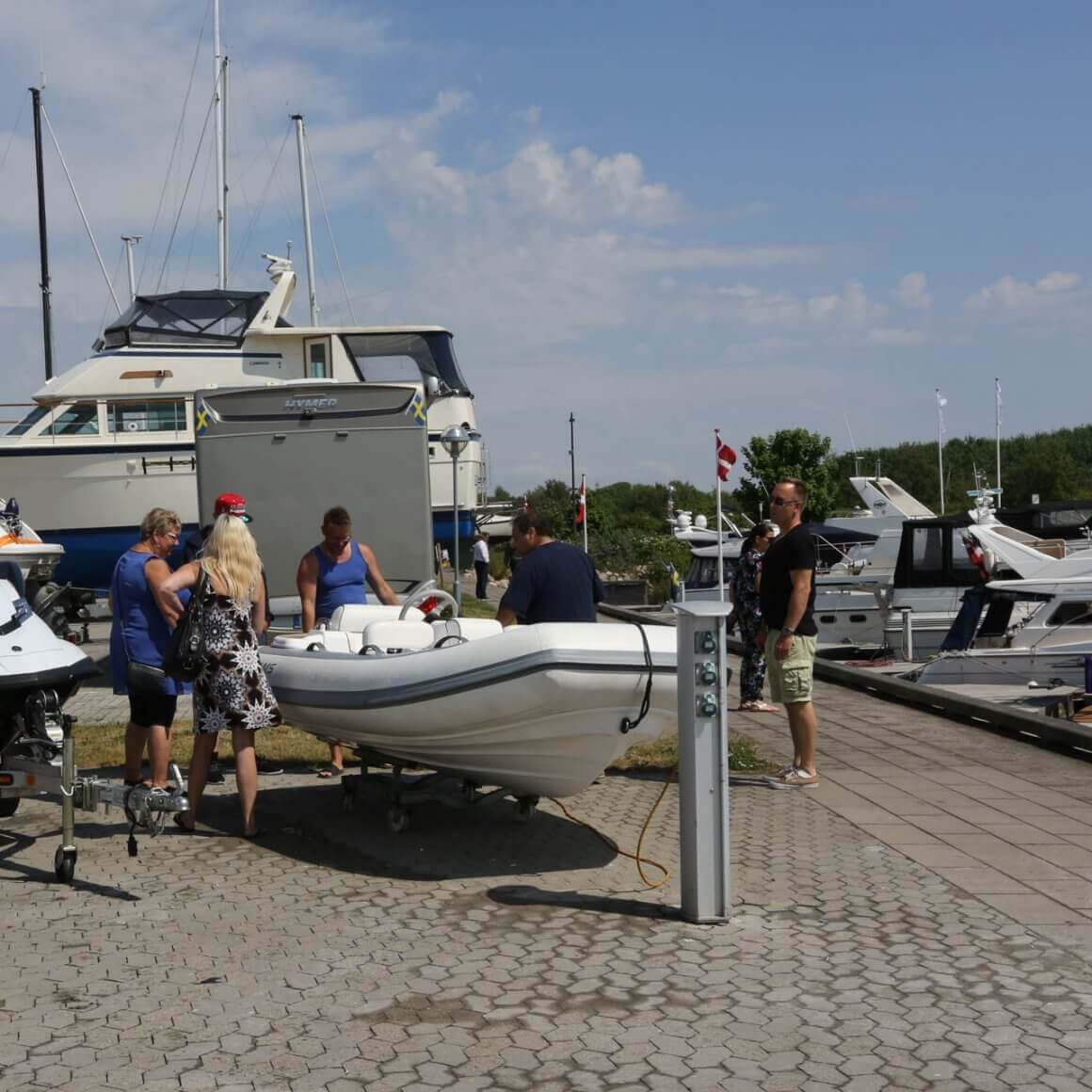 Vi har ca 50 egne båd pladser, hvor vi kan tilbyde enkelte ledige vinter samt sommer bro pladser for både op til 85 fod på de største pladser. Broerne og dele af havnen er video overvåget døgnet rundt, og der er 2x 13 amp el stik pr båd med eget el kort, så man har mulighed for masser af el ombord. Havnen er godkendt som A havn, hvilket betyder man kan ligge i vandet hele året rundt i beskyttede omgivelser.