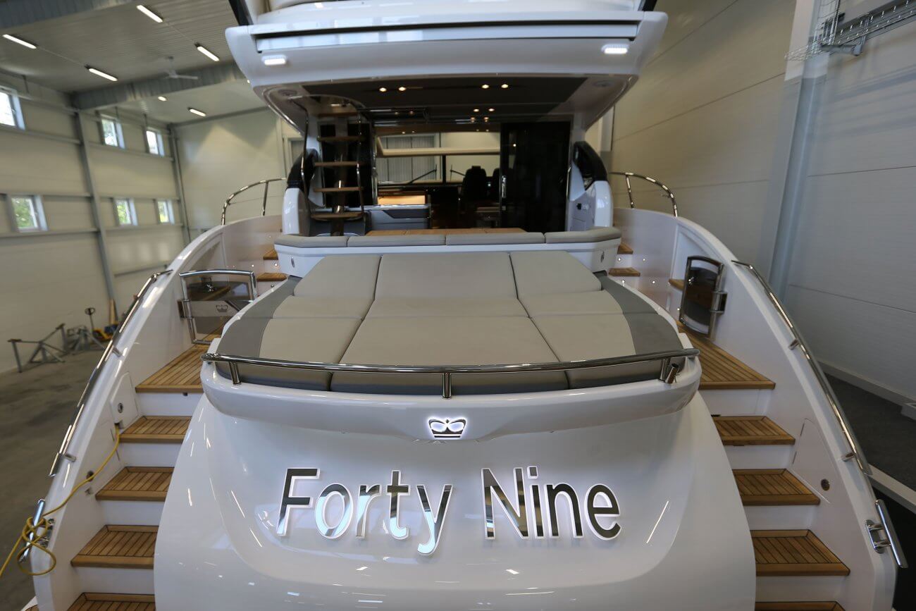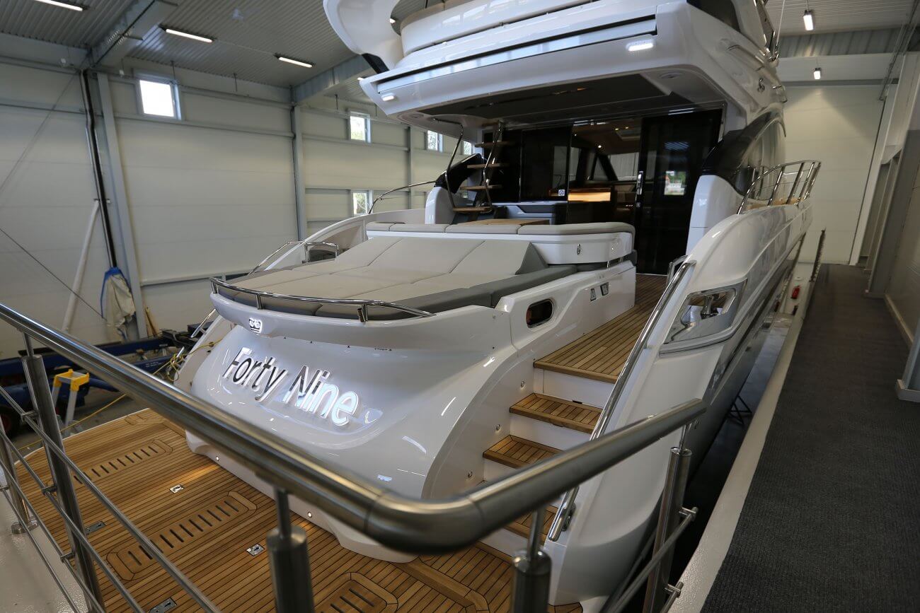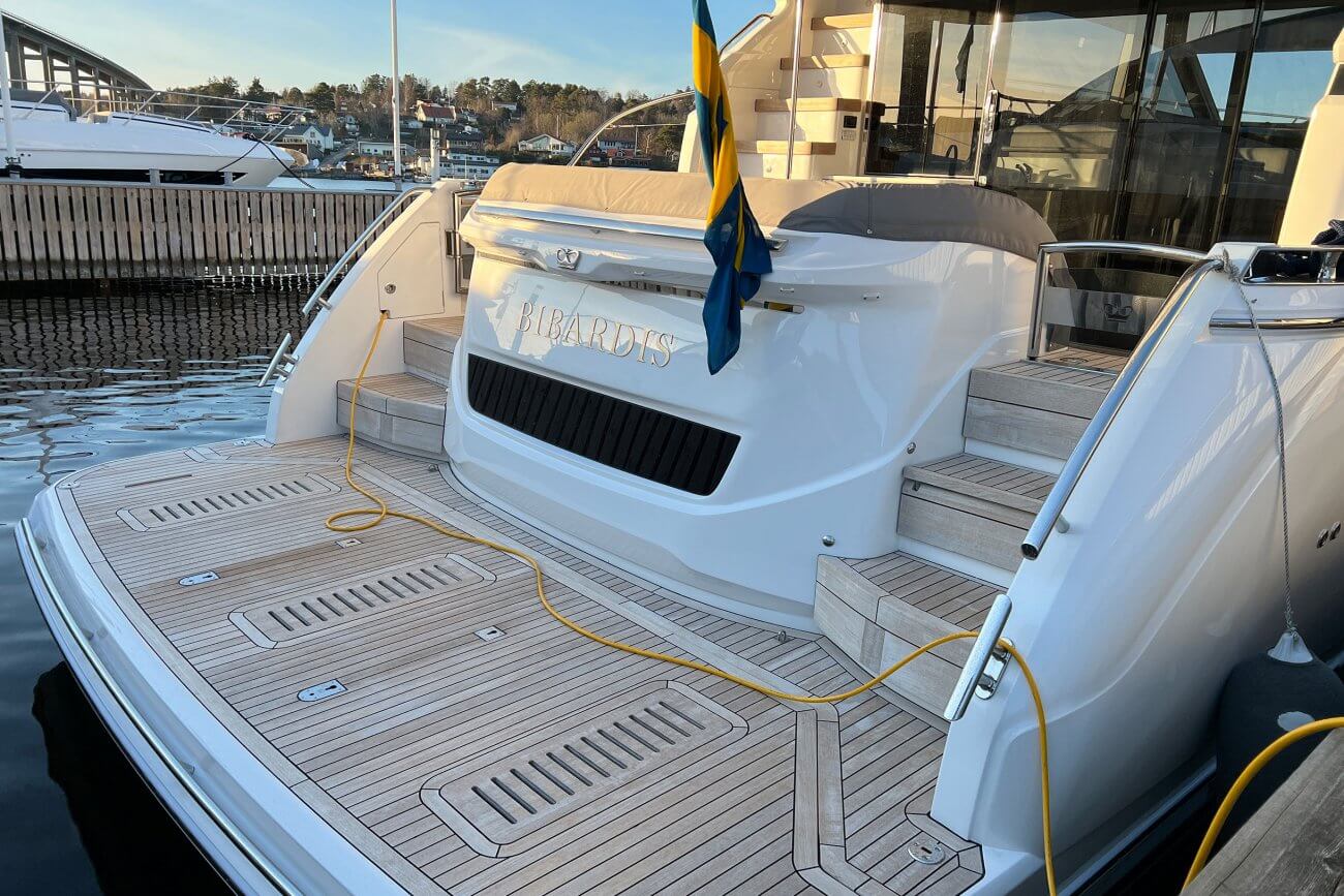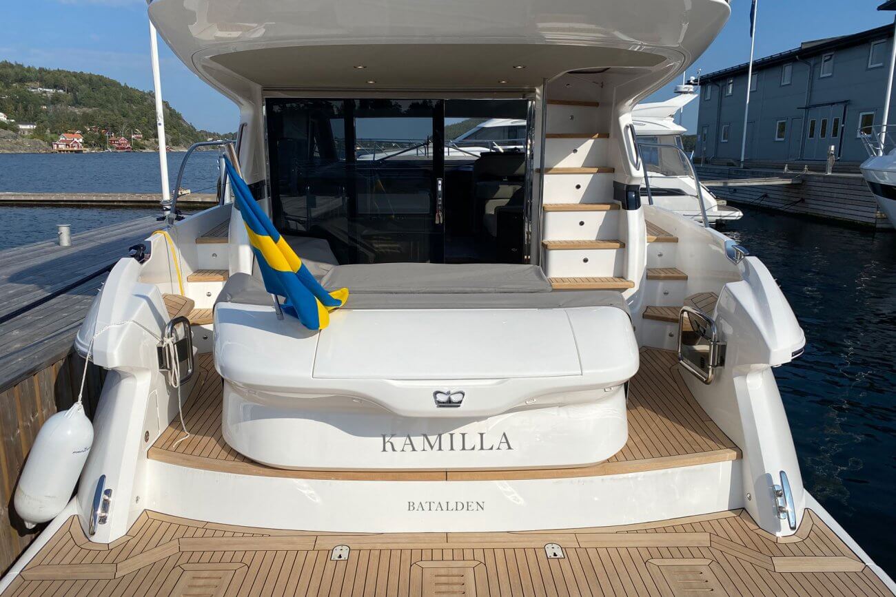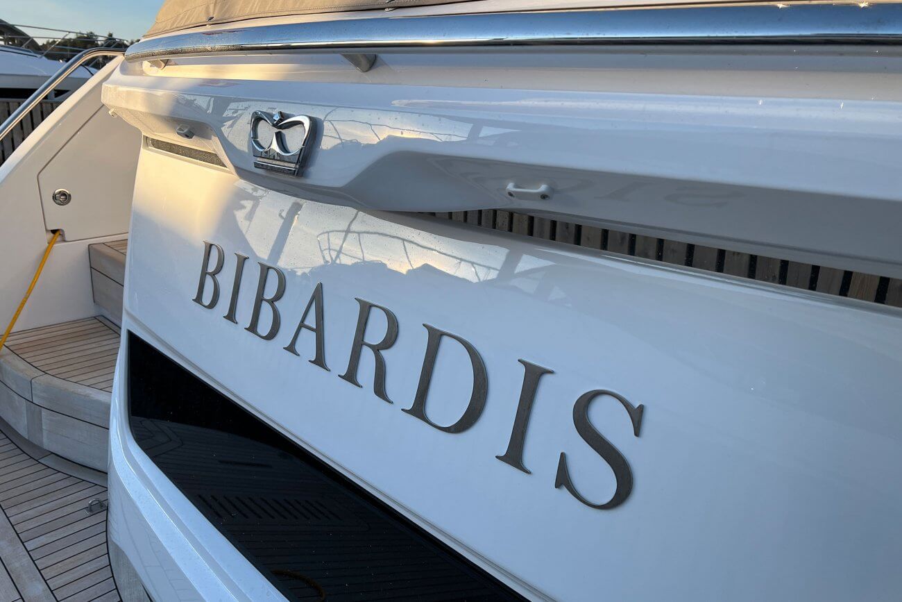 Navn i rustfrit stål med belysning i enhver skrifttype og størrelse. Ønskes hjemmehavn anbefales disse bogstaver uden belysning. Hvert bogstav er monteret med huller i plasten til strømforsyning og nogle gange også fastgørelse, hvilket medfører en omfattende plastreparation ved navneskift. Lysfarve og styrke er ikke garanteret og kan afvige fra anden belysning på båden. Plexiglas, der bruges til belysning, varierer i tykkelse og kan afvige fra prøvebilleder. Pris for skilt oplyses på forespørgsel. Cirka två dagars arbejde, opkræves løbende.