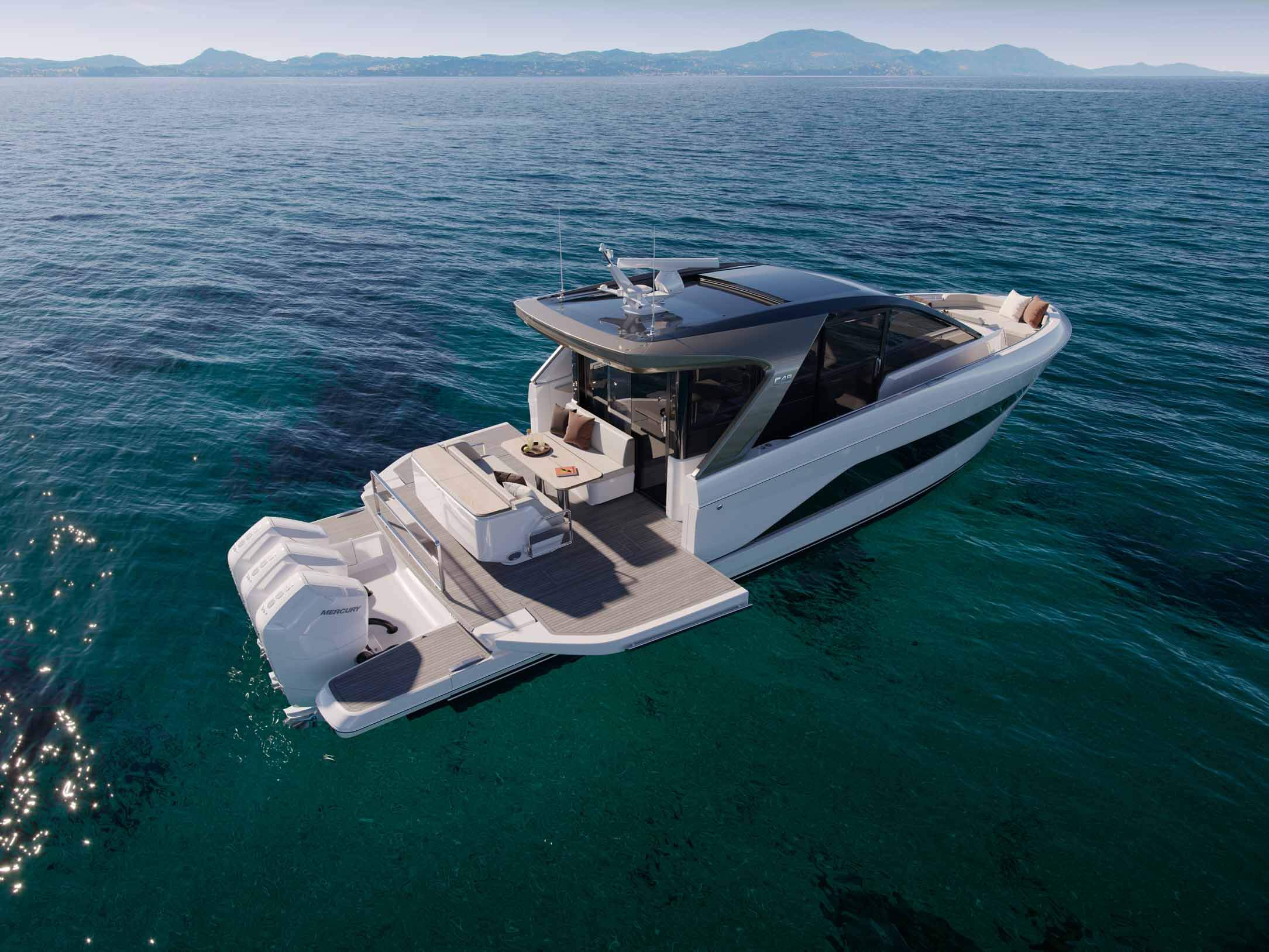Den lyse salon rummer både siddegruppe og pantry og kan åbnes op med et skydetag og store glasdøre, der forbinder salonen med cockpittet. Her findes en rummelig spiseplads og wetbar til socialt samvær. Ved førerpladsen giver sidedøre nem adgang til dækket, og for indenbordsmodeller kan en hydraulisk badeplatform vælges for lettere adgang til vandet.