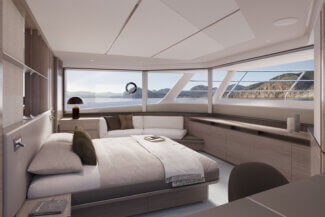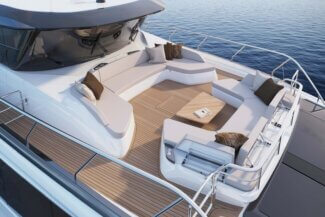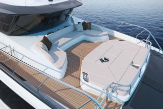 Ejersuiten er en oase af ro, med panoramisk udsigt og privat adgang til fordækkets terrasse, som er det ideelle sted til afslapning. Det åbne design på hoveddækket giver en naturlig overgang mellem salonen og cockpittet, hvilket fremhæver den rummelige følelse.