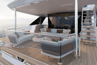 Princess X90 er det nyeste medlem af den prisvindende X-Class-serie, som kombinerer banebrydende design, rummelighed og luksus. Cockpittet har udfoldelige balkoner og en smukt buet glasdør, der skaber en glidende overgang mellem inde- og udeområderne, så du altid er tæt på havet. Hvert element er nøje gennemtænkt for at tilbyde både komfort og funktionalitet.